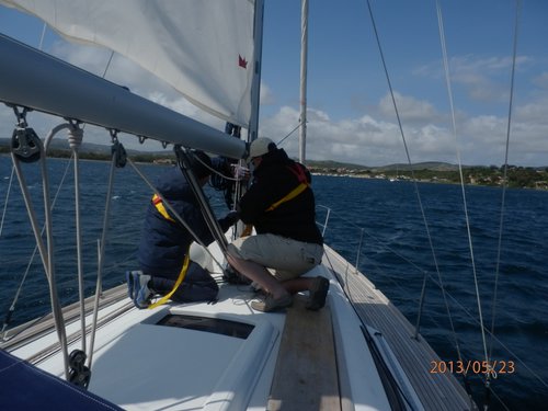 A taky opravujeme... Celkem boj, taková zaseklá rolovací mainsail... A poučení pro příště... Klasika je klasika...